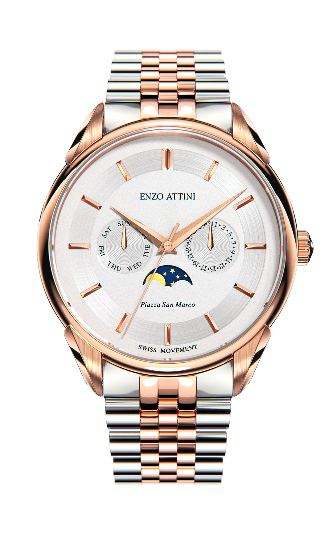 Piazza San Marco di Venezia / President Bracelet, Silver & Rose Gold Color, Swiss Movement.