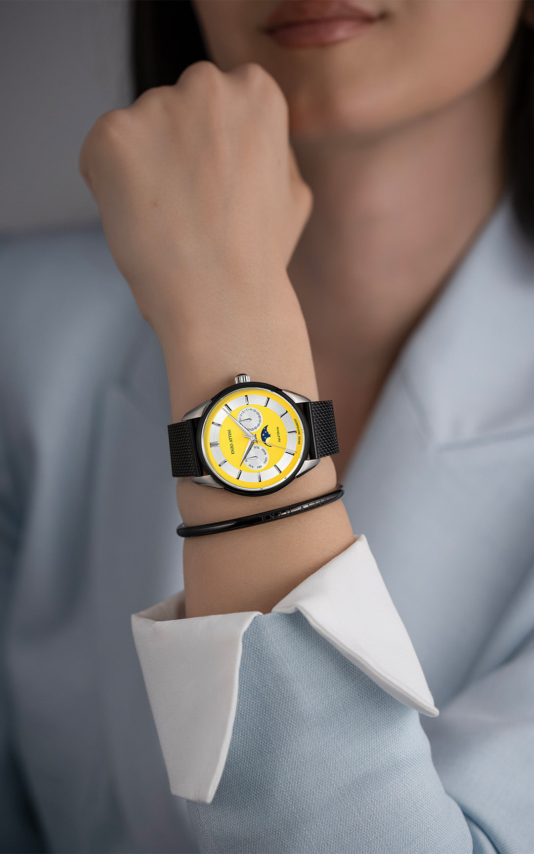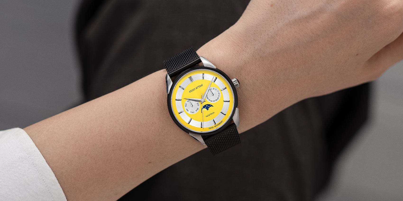 The watch comes with a mesh strap already in place, stainless steel 316L,