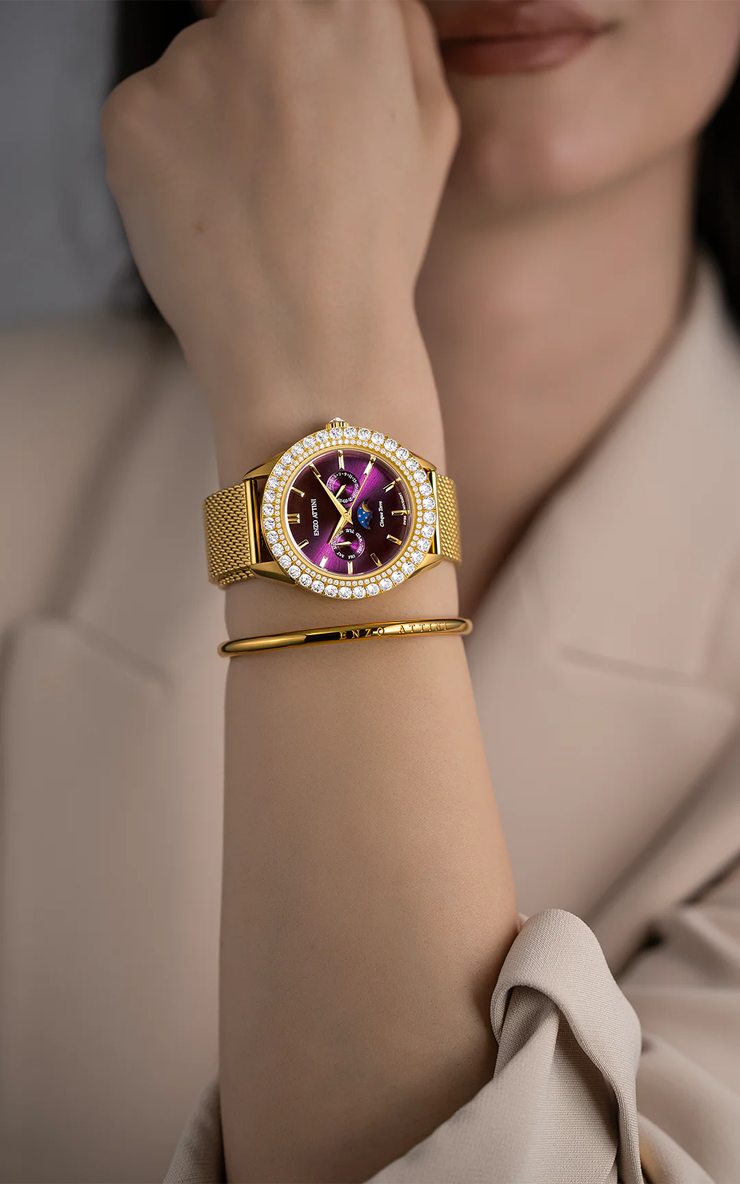 Case: Stainless steel 316L, gold color (plated with genuine 18K gold), 40mm x 8.9mm.