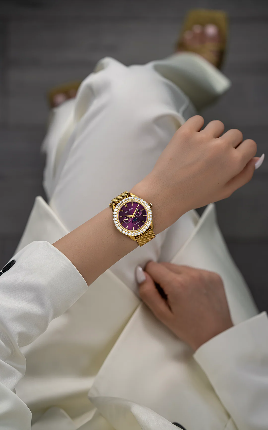 Mesh Strap: Stainless steel 316L, gold color (plated with genuine 18K gold), one size fits all.