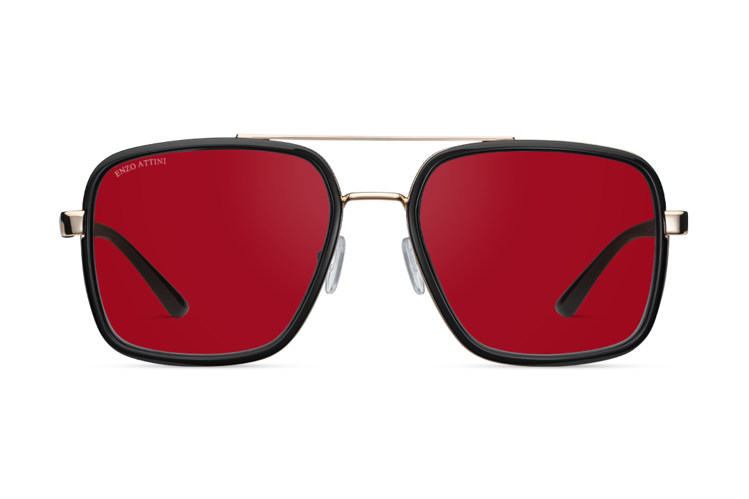 Dark Tortoise Red + Black Lens.