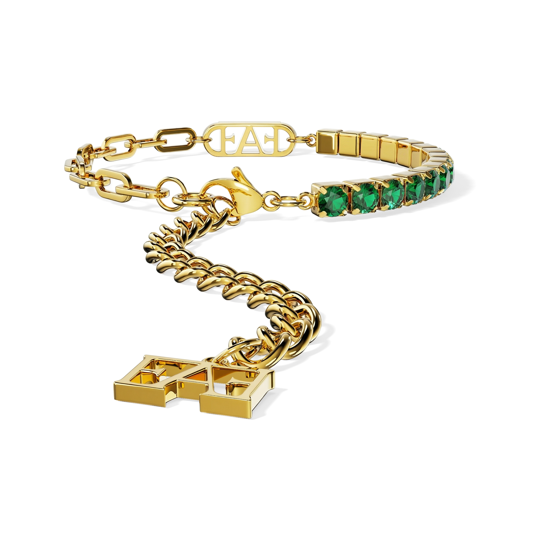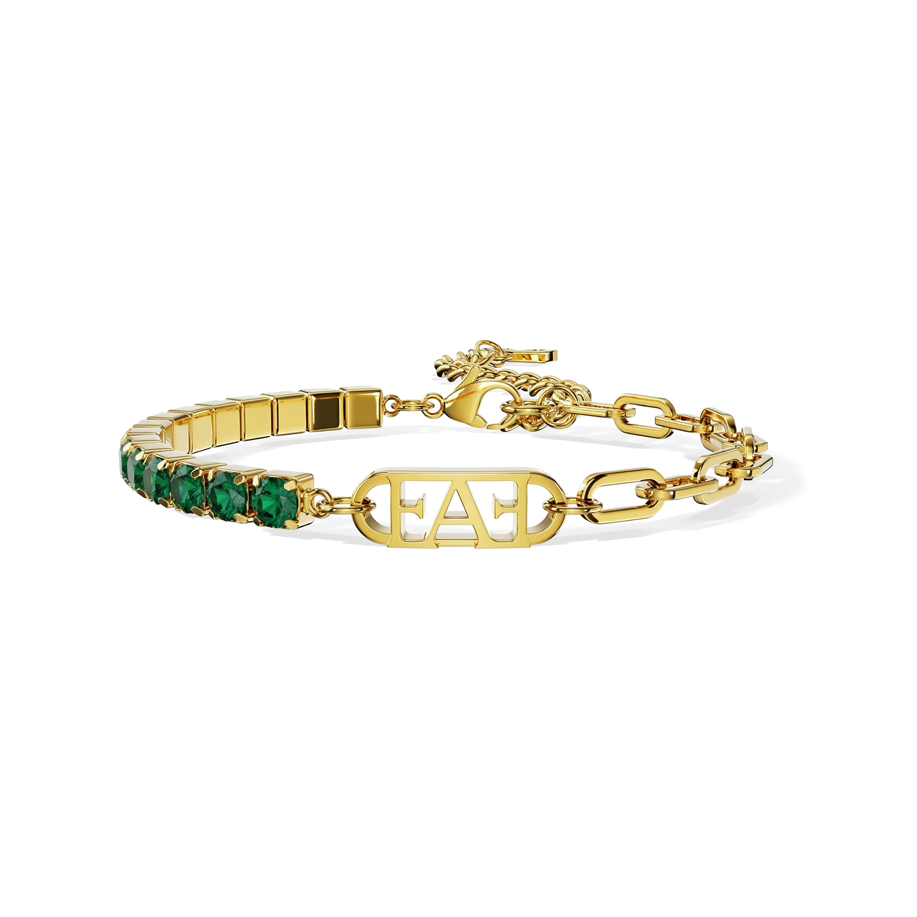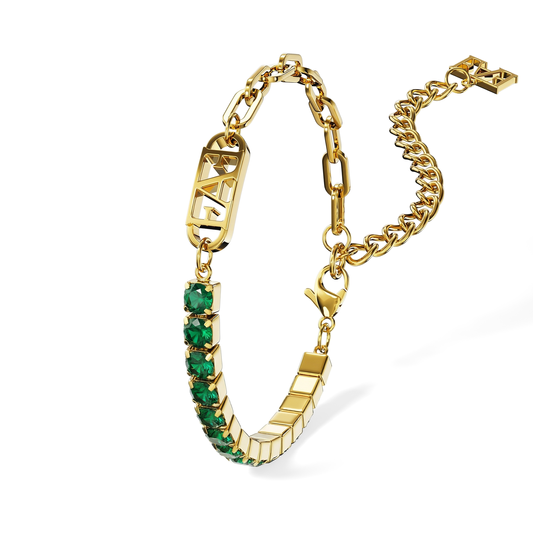 The Glam Tennis Chain Bracelet embodies contemporary elegance through a bold yet fluid design. Characterized by its layered chain construction, adjustable silhouette, and distinctive Enzo Attini logo detailing, it creates a strong visual identity while maintaining a refined and sophisticated aesthetic. The extended chain and emblem charm add movement and character, making the bracelet a true statement piece.