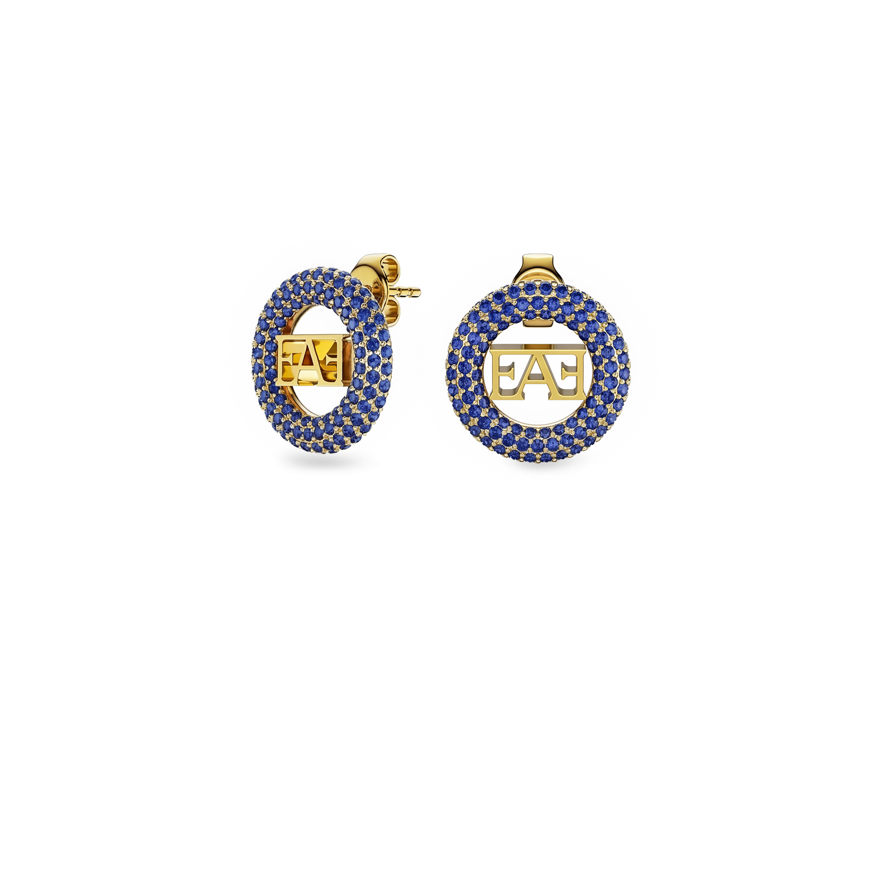 • Design: Stone-set earrings featuring the Enzo Attini logo