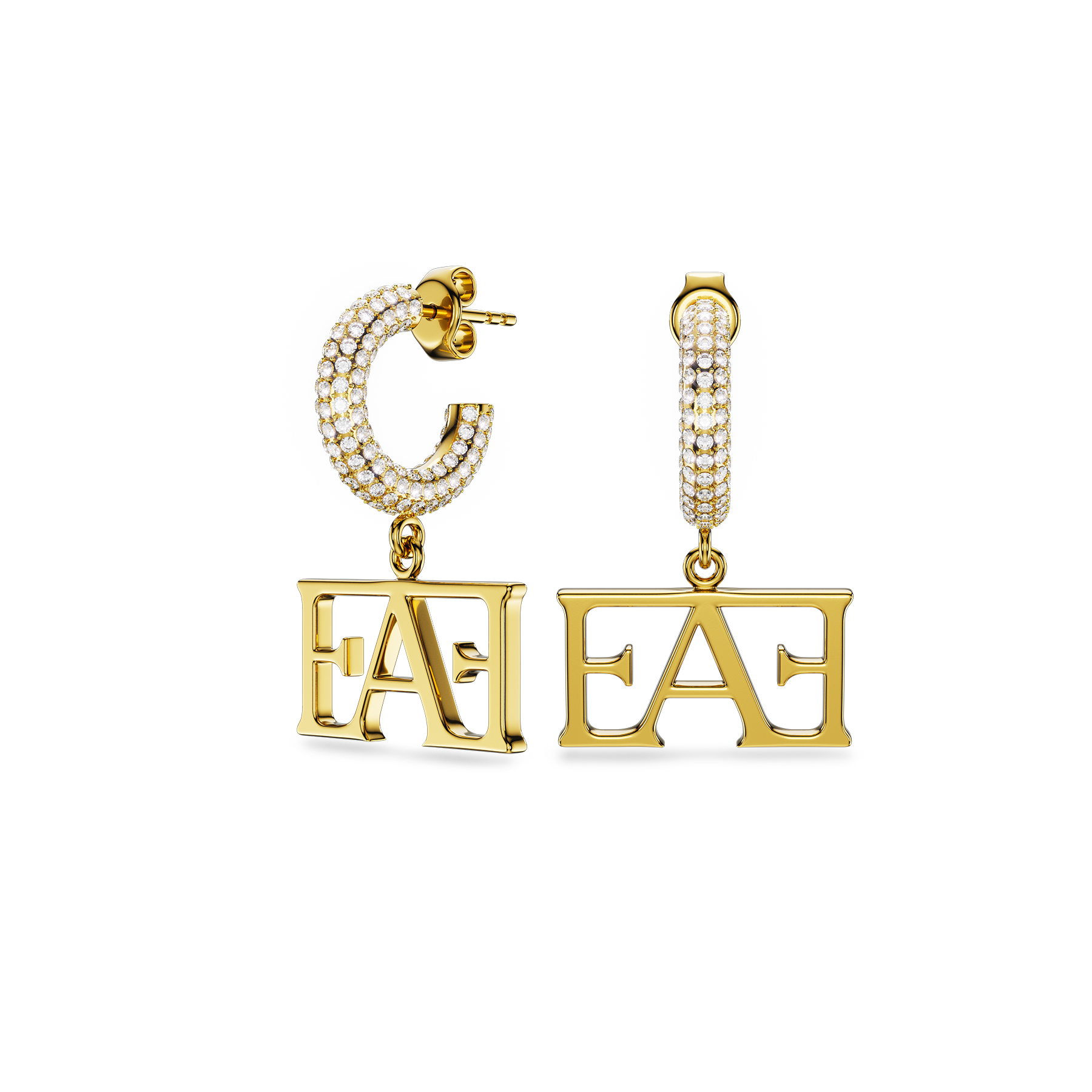 • Design: Stone-set earrings featuring the Enzo Attini logo
