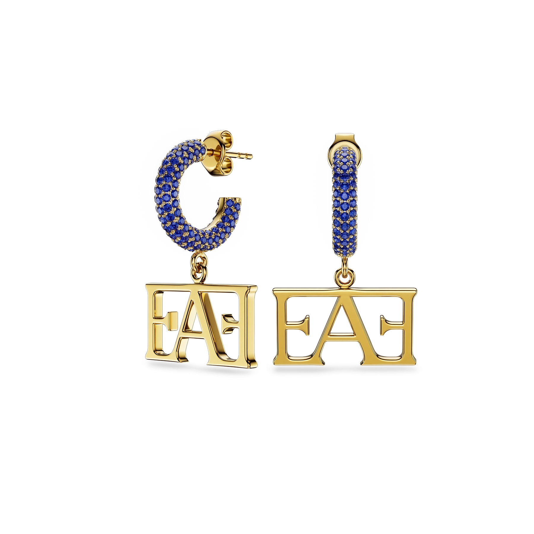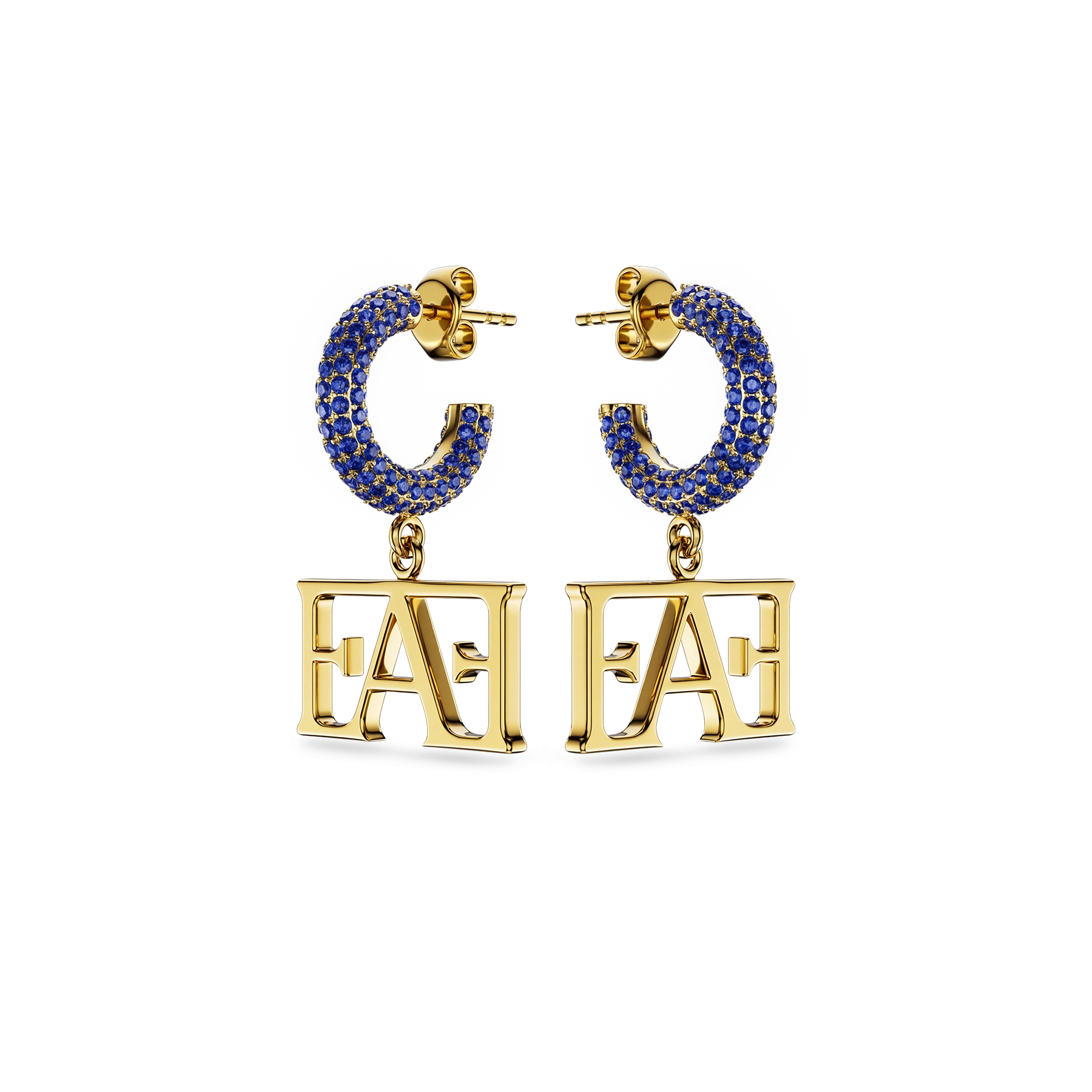 • Design: Stone-set earrings featuring the Enzo Attini logo