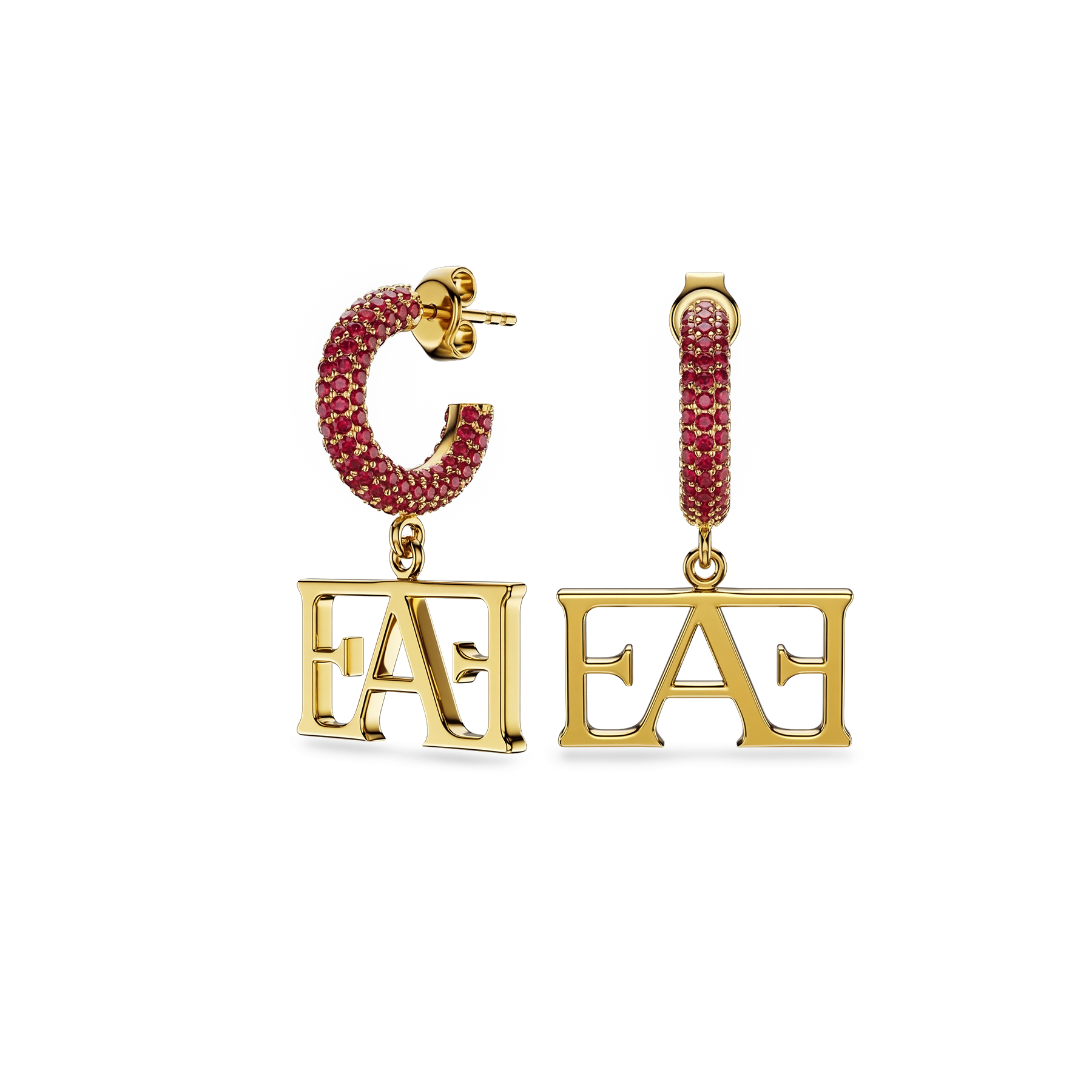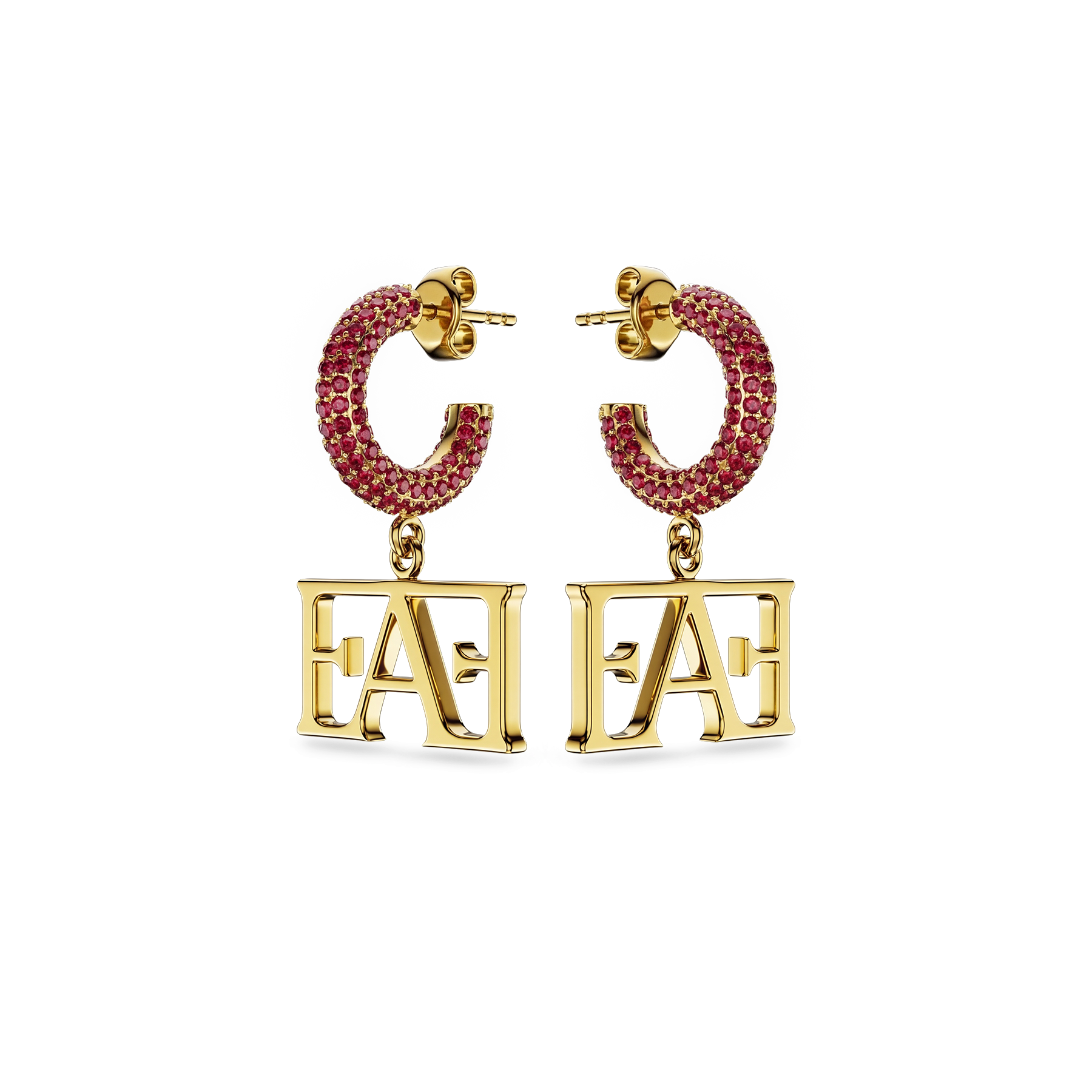 • Design: Stone-set earrings featuring the Enzo Attini logo