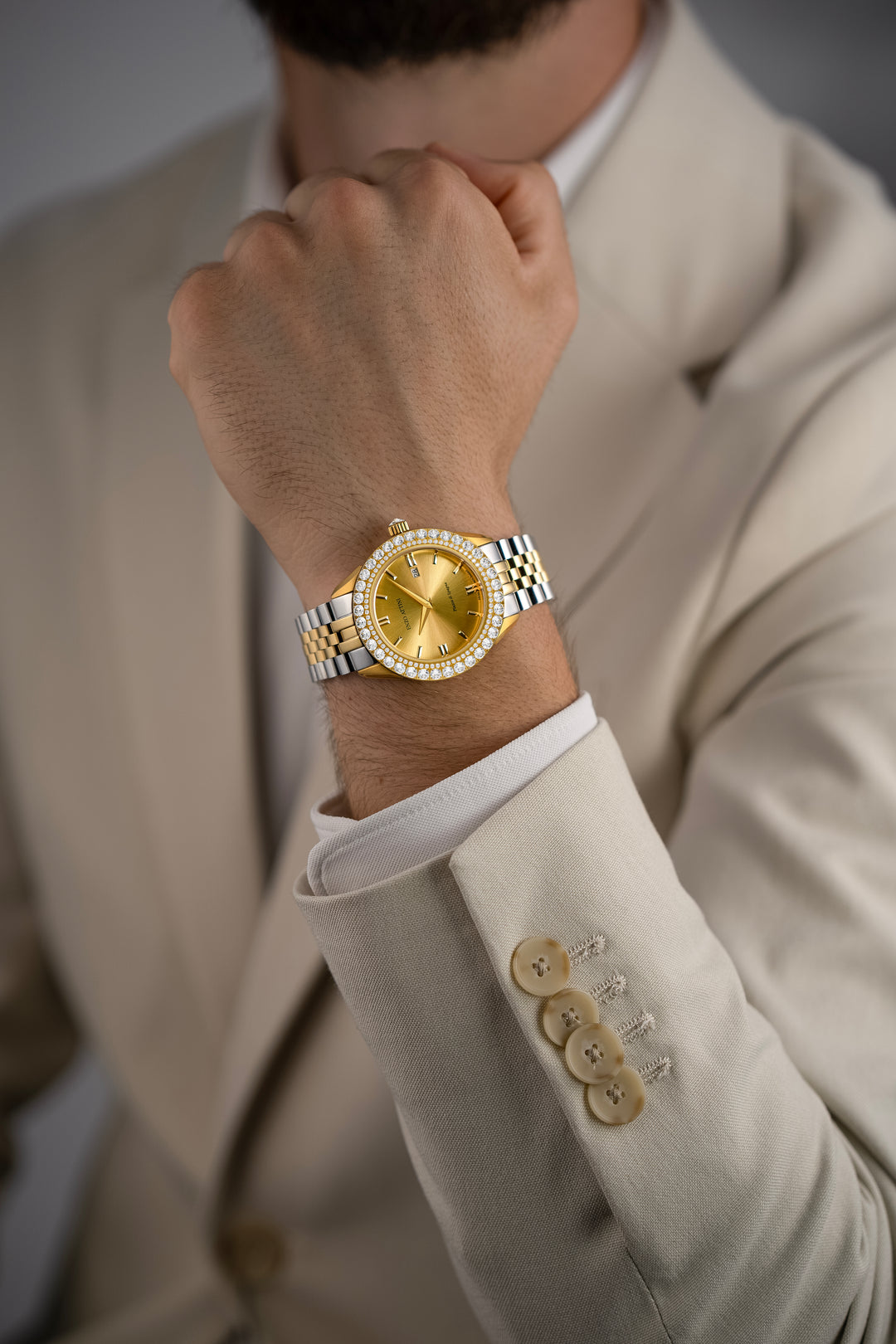 • President Bracelet: Stainless steel 316L, silver & gold color (plated with genuine 18K gold), fits wrists up to 22 cm.
