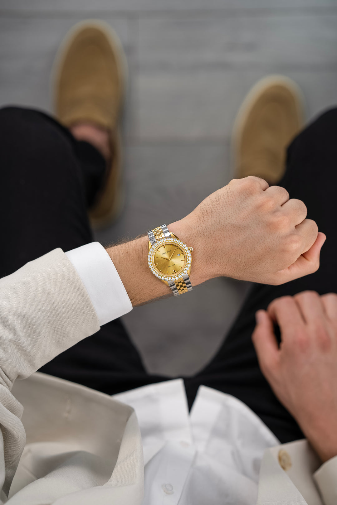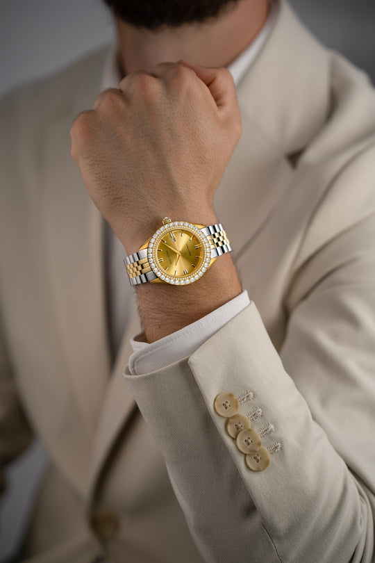 Piazza di Spagna, Roma ll / President Bracelet, Silver & Gold Color, Swiss Movement